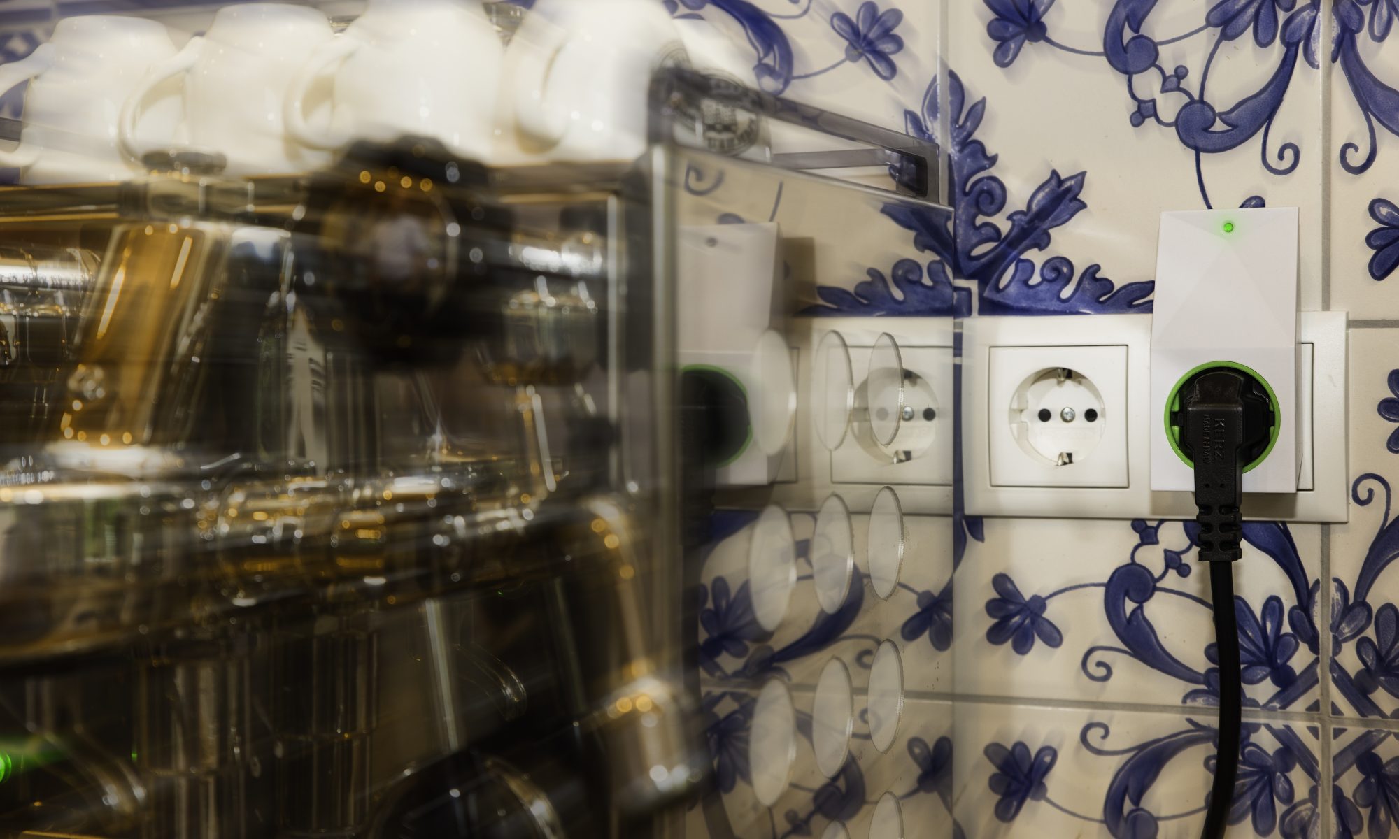 Homeconnex Hausvernetzer Manuel möchte zum Frühstück eine aufgeheizte italienische Espressomaschine vorfinden. Dazu haben wir einfach ein Smart Socket zwischen Maschine und Steckdose gesetzt.
